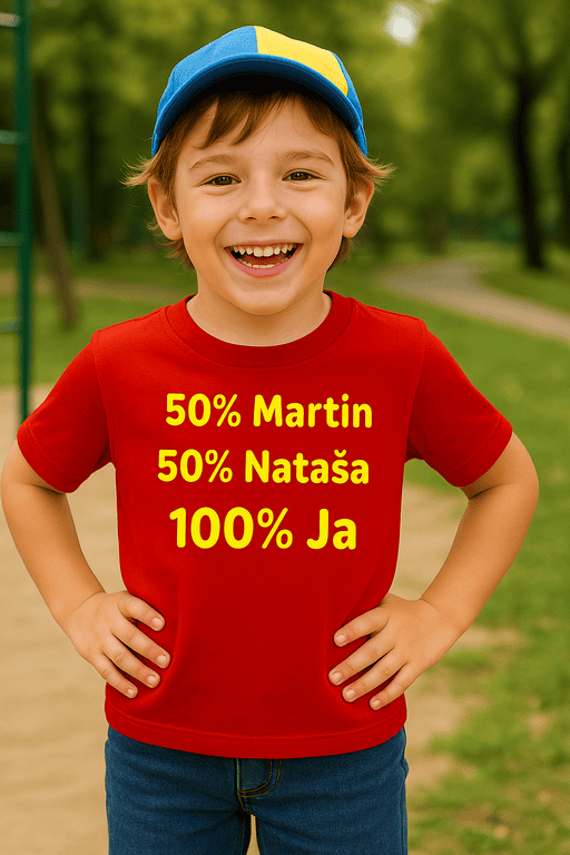 Kad se mali šef predstavi, svi odmah znaju čiji je – i to s punim ponosom. Upiši imena i pusti da majica odradi show gdje god se pojavi.
