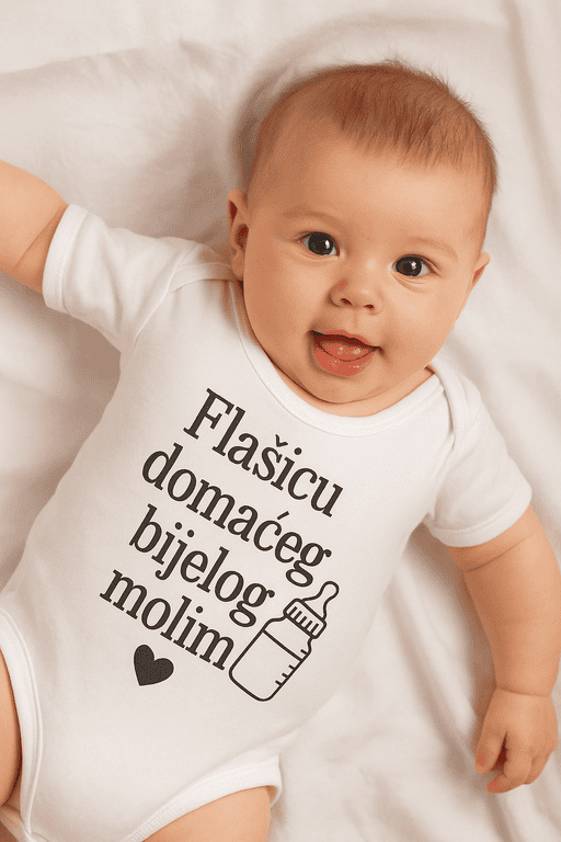 Mini sommelier na zadatku! 🍷🍼 Bodi s natpisom “Flašicu domaćeg bijelog molim” nasmijat će cijelu familiju. Idealno za roditelje s humorom i poklone koji se pamte! 🎁