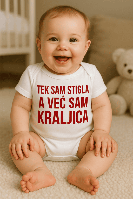 Ovaj bodi je za mini vladarice koje osvajaju srca brže nego što nestane duda. Roditelji, bake i tetke – pripremite kamere, jer kad se pojavi ova kraljevica, feed se puni lajkova brže nego što kažeš “bočica”. Dostupno u više boja za svaki kraljevski outfit.