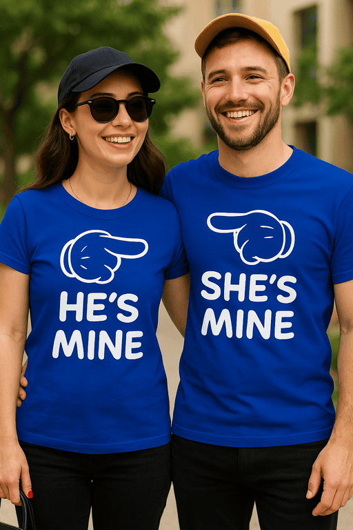 Tko je čiji? Ove majice to viknu umjesto vas! 😄 Komplet s natpisom HE’S MINE, SHE’S MINE – idealan za fore i zajedničke fotke! 📸