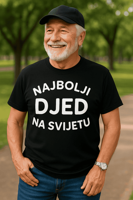 Dovoljno je da je obuče i svi znaju tko priča najbolje priče, popravlja sve s tri čavla i zna gdje je najjeftiniji sladoled. Kad ti se riječi zapetljaju, natpis govori umjesto tebe. Bonus: djed će se hvaliti po kvartu kao da je osvojio Ligu prvaka.
