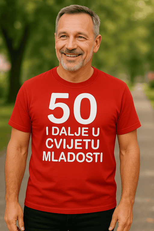 Pola stoljeća iskustva, a i dalje ti stoji osmijeh k’o da imaš 25. Ova majica jasno poručuje da se godine broje samo na računu za svjećice, ne u stavu. Nosi je na tulumu, nedjeljnom ručku ili kad treba suptilno podsjetiti ekipu tko je još u cvijetu — ti; dostupno u više boja.