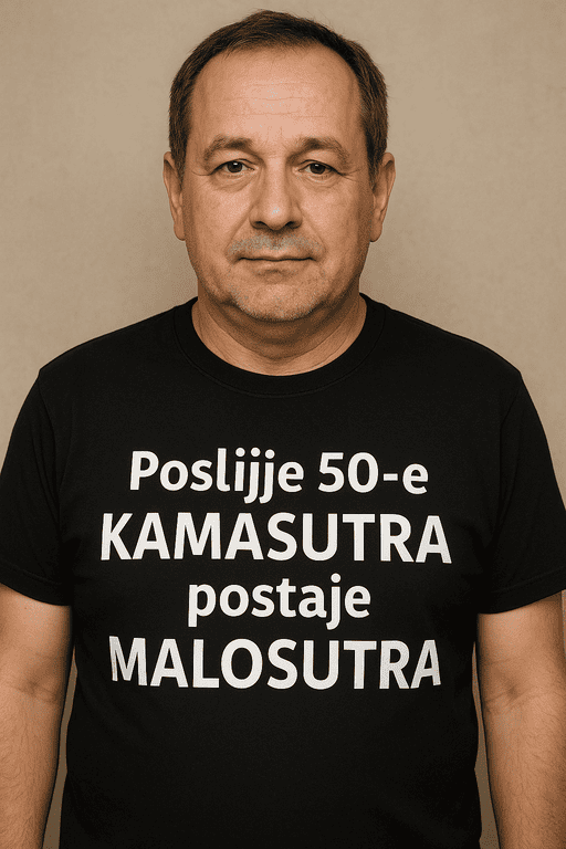 😂 Kad 50-ica stisne enter, Kamasutra klikne “malo sutra” – a ova majica to kaže umjesto tebe!