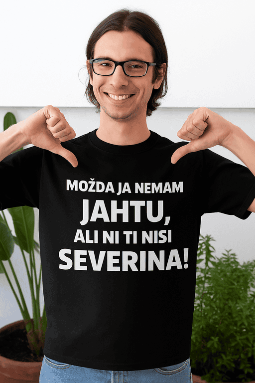 Kad nemaš jahtu, imaš bolji adut – humor! 😎 Natpis “MOŽDA JA NEMAM JAHTU, ALI NI TI NISI SEVERINA!” garantira salve smijeha. Idealna za ekipu koja voli zafrkanciju i nezaboravne fotke! 📸