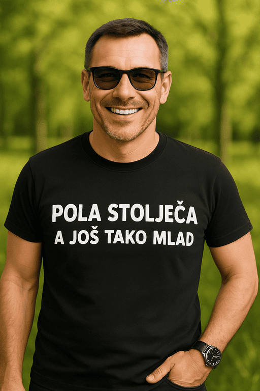 😎 POLA STOLJEĆA A JOŠ TAKO MLAD – majica koja službeno potvrđuje da godine dolaze, ali duh ne stari!