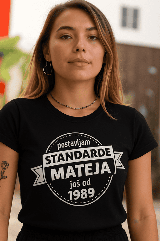 😄 Standardi visoko? Mateja ih diže još više! Ova majica jasno poručuje: “postavljam STANDARDE MATEJA još od 1989.”