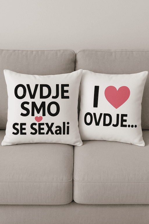 😜 Dva jastuka koja bez pardona kažu: OVDJE SMO SE SEXali — a drugi dodaje: I ♥ OVDJE…