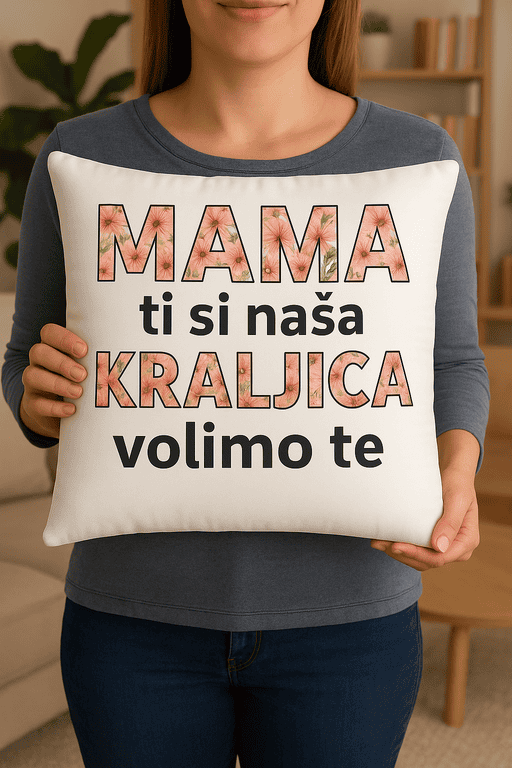👑 Kad je mama kraljica, prijestolje je kauč! Ovaj jastuk jasno poručuje: ‘MAMA ti si naša KRALJICA volimo te’.