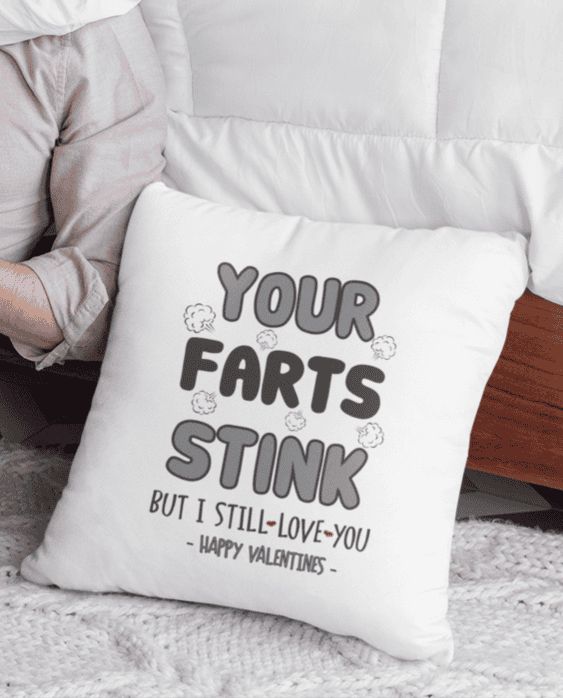 Kad je ljubav jača od svega… i mirisa. 😜 Jastuk s natpisom “YOUR FARTS STINK BUT I STILL LOVE YOU – HAPPY VALENTINES -” kaže ono što drugi ne smiju! Idealno za parove s odličnim smislom za humor. 💘
