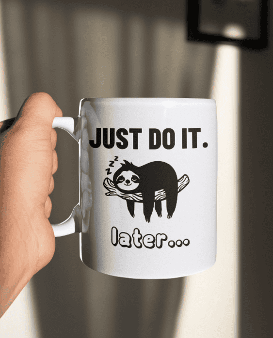 Kad motivacija kasni, ova šalica isporučuje punchline: JUST DO IT. later… 😴 Savršeno za kronične odgađače, uredske komičare i jutarnje zombije. 🎁