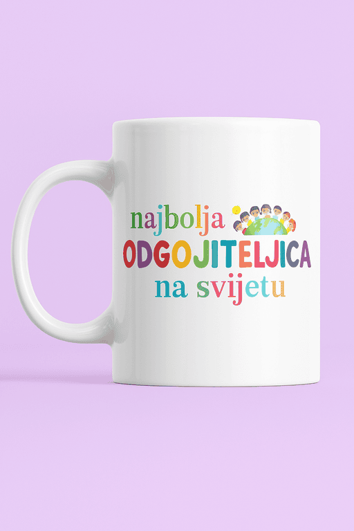 Odaješ priznanje vrtićkoj superjunakinji? ☕️ Šalica s natpisom ‘najbolja ODGOJITELJICA na svijetu’ kaže sve umjesto tebe! Idealno za tete iz vrtića, kolegice i supermame. 🎁