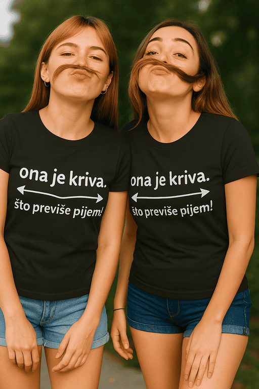 Spremni za fore koje dižu čaše i obrve? 😂 Ovaj komplet s natpisom ‘ona je kriva. što previše pijem!’ garantira smijeh gdje god se pojavite. Idealno za parove i ekipu koja voli dobru zafrkanciju! 🎁