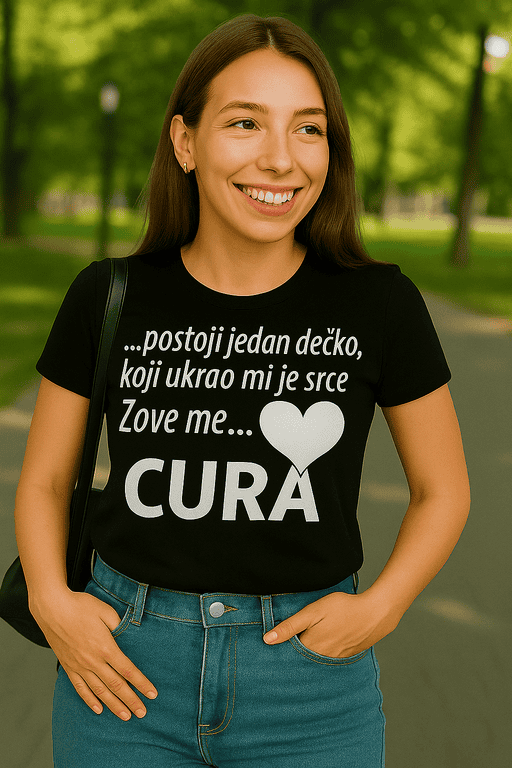 S natpisom “…postoji jedan dečko, koji ukrao mi je srce Zove me… ♥ CURA” nosiš ljubavni status kao VIP propusnicu. Savršena za kave s ekipom, spojeve s njim i za suptilno: zauzeto, hvala! Dostupno u više boja.