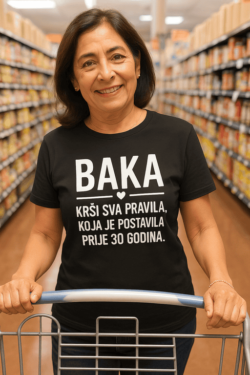 🤣 Baka + pravila = kaos u najzabavnijoj verziji! Majica s natpisom ‘BAKA ♥ KRŠI SVA PRAVILA, KOJA JE POSTAVILA PRIJE 30 GODINA.’ kaže sve bez dodatnih objašnjenja.