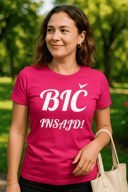 Kad je BIČ INSAJD! – stav je aut! 😉 Ova smiješna ženska majica odrađuje sarkastični posao umjesto tebe. Idealna za kraljice ironije, best frendice i sve koje vole nasmijati ekipu. 😄