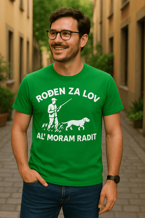 🦌 Kad lov zove, a posao viče – tu je majica s porukom: ROĐEN ZA LOV AL’ MORAM RADIT!